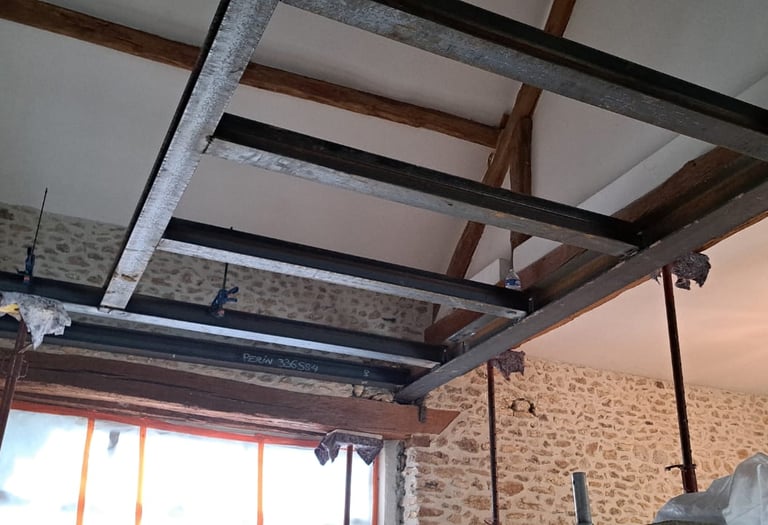 Remplacement de poutres, renforts métalliques ou béton collaborant. Diagnostic et exécution dans les règles de l’art.